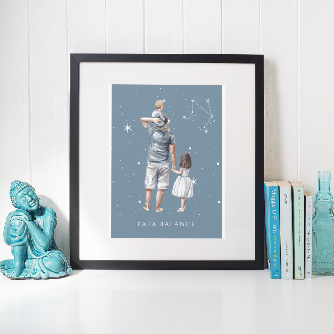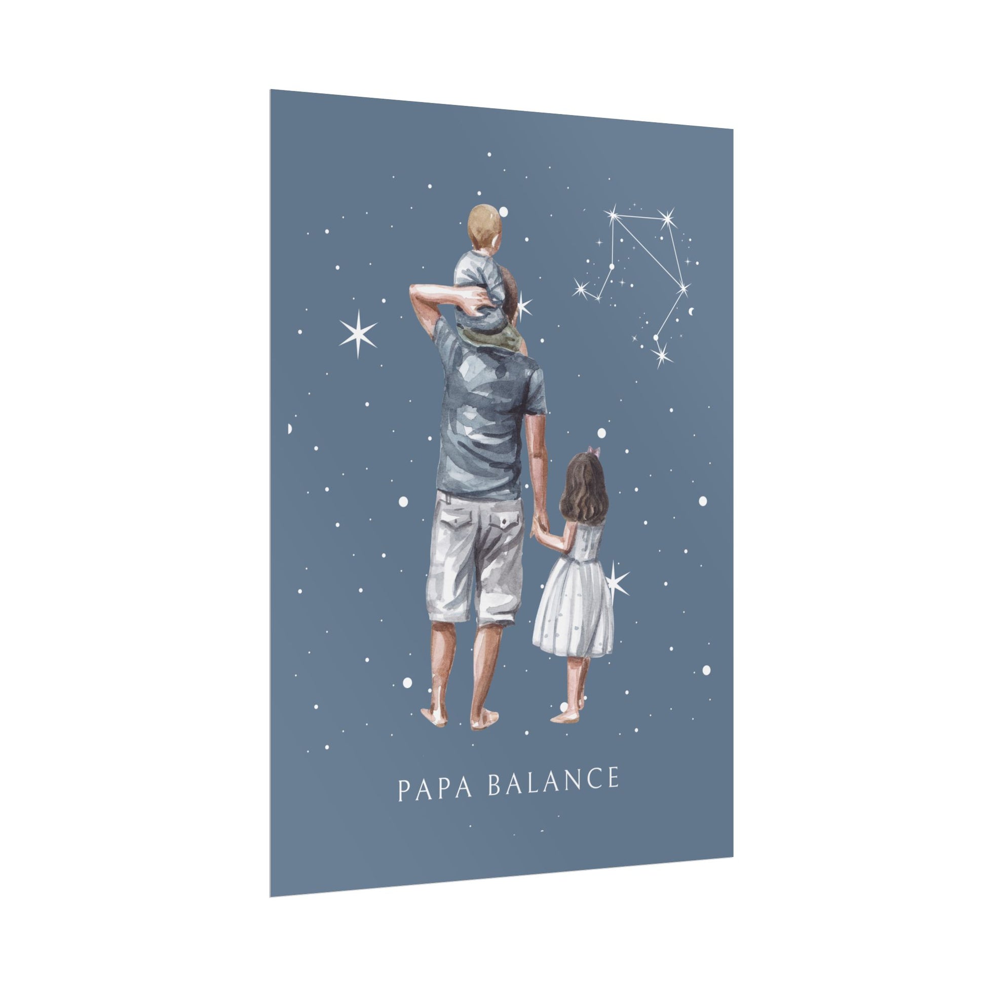 Apportez une touche d’harmonie et d’élégance à votre intérieur avec ce poster de la collection Cosmic Dad. L’illustration met en scène un père avec ses enfants, sur un fond étoilé mettant en valeur la constellation de la Balance. Ce design célèbre le lien délicat et équilibré entre un père et son enfant.
