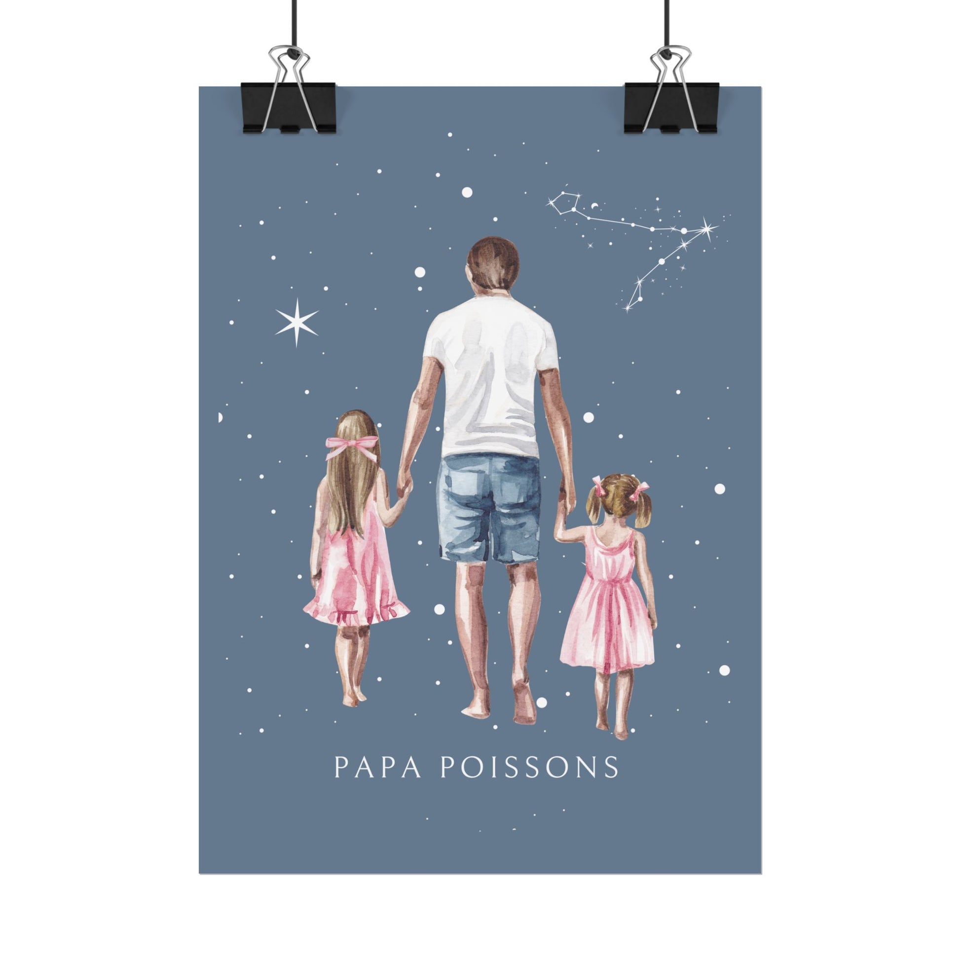 • Design exclusif : Une illustration empreinte de poésie et de tendresse, représentant un père Poissons et son enfant sous l’éclat mystique de la constellation des Poissons.