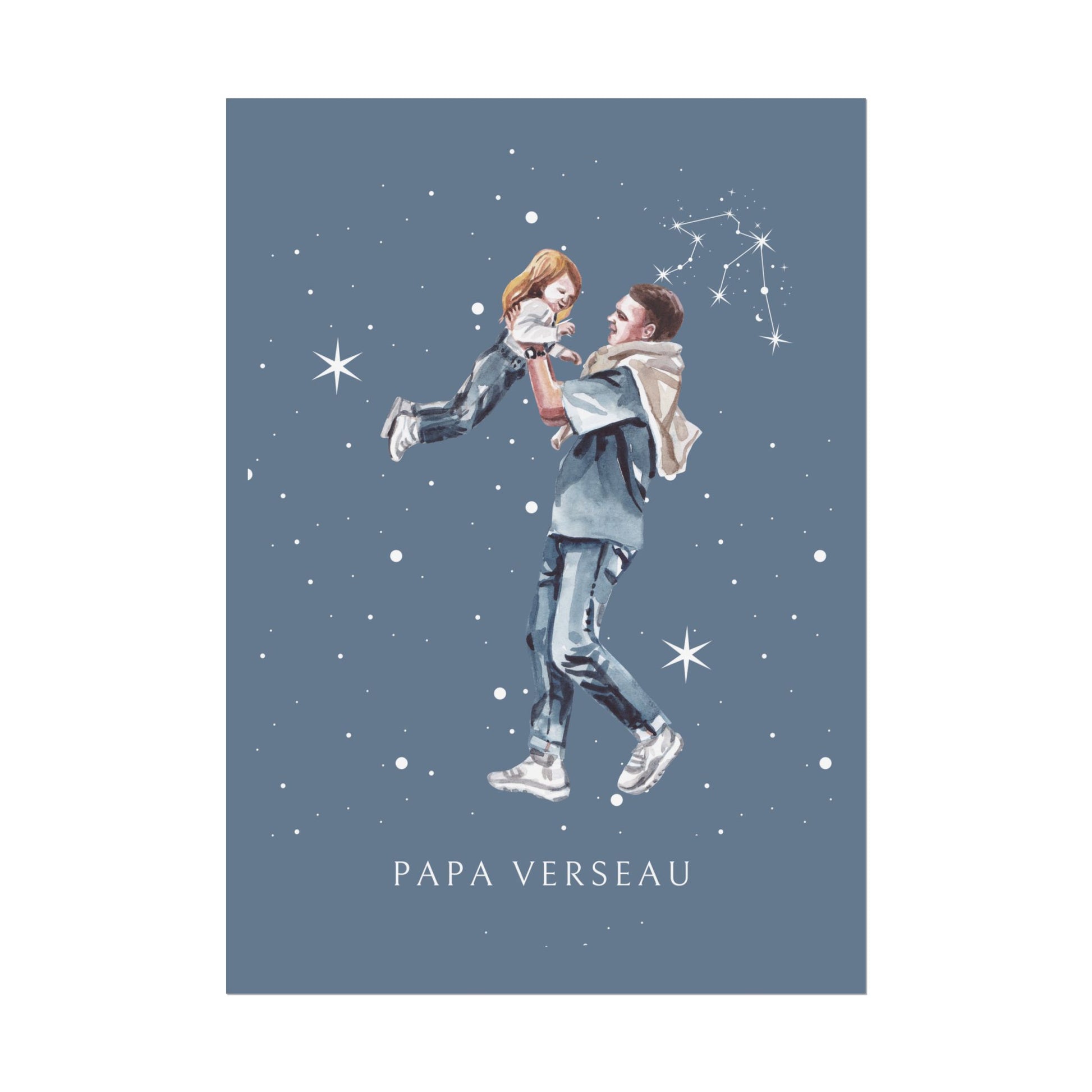 • Design exclusif : Une illustration inspirante qui représente la connexion entre un père Verseau et son enfant sous l'éclat de la constellation, symbole de liberté et de bienveillance.